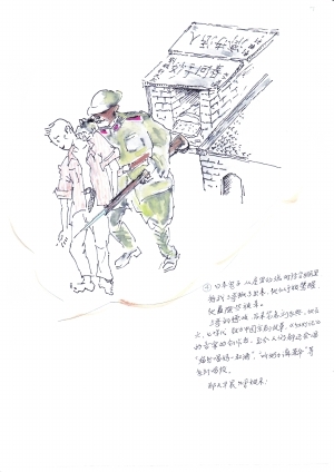 刘德山:那时没有照相留下来,我就打算把一幕幕如实画下来。有的实际情景,如大搜查,枪杀人、刺人、挑人,要惨烈得多。我从来没有学过绘画,也不懂得章程笔法,仅是为了表达心里的情景,试着画出来,暮年童心,初幼水平,千万不要误会我是什么“画家”。我想,今年还要画出数十幅,尽可能多地展现日本侵华的历史细节。