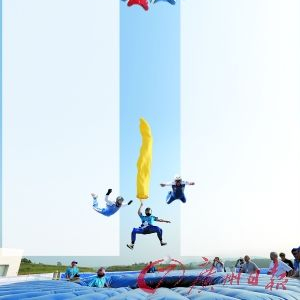 我们普通人现在要“飞”起来,就是借助这种立式风洞,而最早从军用功能转为民用娱乐的就是绵阳风洞。不过,绵阳民用风洞属于室内固定装置,体验者如同进入一个封闭的管子。室内风洞是固定装置,缺点是无法灵活搬运,而露天风洞的研制成功解决了这一难题。2014年,飞行家(北京)投资股份有限公司研发的中国首个露天风洞试飞成功,使得风洞设备可以根据需要随时拆装、转场。今年5月,这家公司运营的国内首个露天娱乐风洞在北京亮相。从外观上看,这是一个十多米高的“圆桶”,内部有一台大功率“鼓风机”,吹出的最高风速能达到50米/秒,可使3~5人同时“飞离”地面。为了安全考虑,“圆桶”内还设置了一块巨大的蹦床,漂浮的人可以缓慢降落在蹦床上。