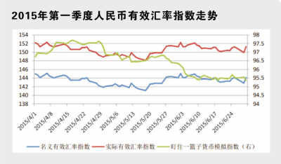 进入2015年一季度,这一走高态势得以延续,但随着一季度末美元的走低,人民币汇率出现回调、盘整,而这种回调盘整的态势成为了整个二季度人民币汇率有效汇率走势的基调。由于受全球经济政治、经济相对稳定,人民币对美元估值趋于合理等因素影响,人民币对美元汇率在小范围内做小幅震荡。