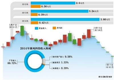 暴风科技股价到达327元的最高价时,其市值达到了333.6亿元。与之相对应,暴风科技2014年全年净利润为4185万元。而今年上半年,其净利润最高不超过801万元。