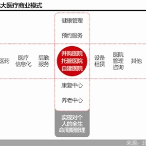 “再补充一点,关于综合医院的收购,我们也不是无节制的,因为综合医院的整个投资规模还是比较大的。”吕和东继续谈到,“那么在基本的医院网络布局实现后,探索出一整套医院管理模式,我们下一个走的方向将是托管,主要针对政府举办的一些运营艰难的医院。”