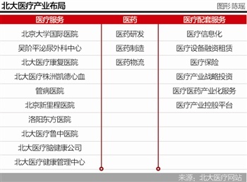 北大医疗产业集团(文中称“北大医疗”)成立于2003年,由北京大学和方正集团共同出资组建,是集医药、医疗于一体的健康产业集团。