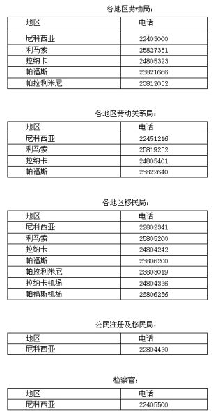要通过国内正规对外劳务公司招募,不要通过私人或国内非法中介机构介绍来塞务工。目前发现有通过私人或非法中介机构介绍来塞务工的,他们向劳务人员索要高额的中介费用,但当劳务人员在境外遇到困难或劳资纠纷时,中介机构却不闻不问,也没有任何形式的保证金以备应急使用,务工者可能会面临巨大的经济损失。一些人和国内非法中介机构与塞浦路斯当地不法势力相勾结,在国内向务工者做虚假承诺,等人员到塞后才发现受骗,个人权益根本无法得到保障。如果雇主出现违反劳动合同用工的情况,中国劳务人员要本着友好协商的原则,与雇主积极沟通,据理力争,争取以最小的成本解决问题。如协商不能起到应有的效果,中国劳务人员应尽量收集雇主违反劳动合同的证据,并与国内劳务输出公司积极取得联系,以仲裁或法律的途径解决问题,禁止采取过激行为。附件1:合同样本附件2:塞浦路斯劳动法摘要附件3:塞浦路斯各地劳动局联系方式