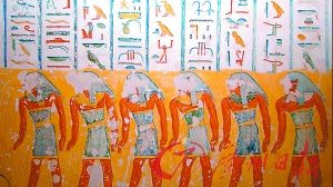 在西班牙阿尔塔米拉的洞窟中,遗留着三万年多前的人类早期的岩彩画作品。而大约在我国的殷商时期,古埃及人更创造了辉煌的岩彩绘画技术。马文西曾两度到埃及考察,亲眼见到3500多年前的埃及帝王谷壁画,不仅规模庞大,而且至今光彩夺目;在洛克索的神殿中,残存的壁画上矿物颜料甚至厚达两毫米,涂绘了整个神殿的墙壁与廊柱。当时埃及人还把铁的硫化物磨锻而成赤红色,把铜的碳酸盐和碳酸钙加上天然碳酸混合加热到700摄氏度左右,做出石青色,成为历史上最初的人工合成色。