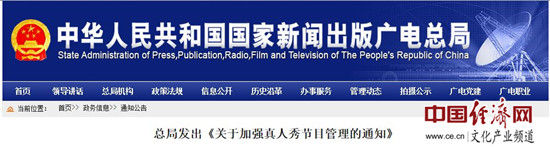 《关于加强真人秀节目管理的通知》