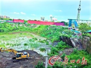 事故现场相邻工地 昨日下午记者回访事故现场发现,在万科广场工地的基坑内,有钩机在现场作业。广州日报记者黄健源摄