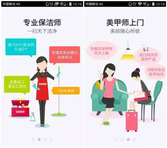 以家政为例,服务员统一培训,全部采用菲律宾女佣的标准姿势,“为什么人家的阿姨从早干到晚都不累,站姿和角度完全不同,人体是呈45度角工作的、手法是S形的手法,这是中国没有的;当浴室犄角旮旯特别脏的时候,用刷子刷和用铲刮,可能都要抠半天,我们的流程是用喷剂,可以先擦亮的地方,擦完了之后再去擦这个地方,就干净了,这是一个时间上的节省。”王迪解释说。58到家的美甲部门更彻底,美甲师一律为雇员,用户只要选择美甲图案,标准化到可以罔顾个人特色。