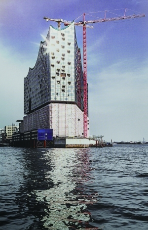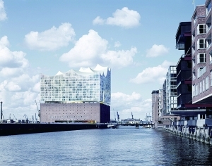 汉堡易北爱乐音乐厅从2007年动工起就迅速成为了城市的地标性建筑,它是汉堡市政府的一个文化重点项目,也是当时欧洲城市内最大的建筑项目之一。音乐厅利用了位于汉堡市中心毗邻的港口新城一座废弃的码头仓库,在不破坏仓库原有外观的基础上,在仓库顶上“叠落”着修建起了一座玻璃幕墙外观不规则的现代建筑群,它包括了公共活动的广场、易北爱乐音乐厅、酒店甚至还有住宅楼层。下面的老仓库则改造为停车场和排练厅、休息室。其建筑宏伟、造型奇特,被认为是古典与现代建筑完美地结合。当这座“新”建筑的外观初现时,旋即成为了汉堡的城市地标性建筑。