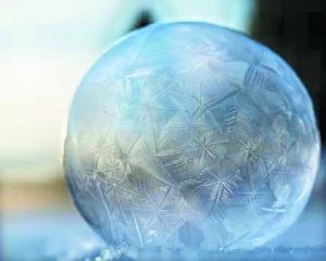 制得的肥皂泡在破裂之前迅速冷却到摄氏0度以下,就会冻结,于是我们就能看到美丽的冰冻泡泡。