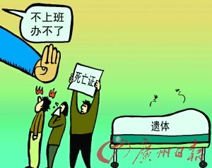 从今年4月1日起,广州实施死亡医学证明(简称死亡证明)办理新规,其中,在家中或养老机构身故者,现改由居委会和社区医院负责开具死亡证明,而目前他们仅在上班时间提供服务。