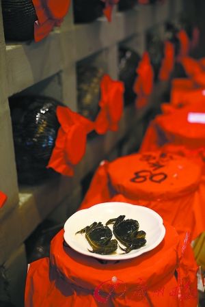 年年此时,六月黄上餐桌。作为大闸蟹的BB蟹,六月黄有着与生俱来的高贵血统。处于幼年阶段的六月黄,蟹膏尚未成型,但重在啖其一口鲜味。通常食蟹,配上一杯黄酒,不仅可中和蟹的寒性,还可将蟹的鲜味发挥得淋漓尽致,位于番禺市桥的唐宋绍兴老酒坊将饮食文化和中国传统酒文化融合交汇。老板娘韦女士对中国文化情有独钟,对于中国酒文化尤甚,店内收藏各式陈年黄酒,更有50年的陈年黄酒。