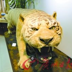 狩猎爱好者收藏的老虎标本。 广州日报记者庄小龙 摄