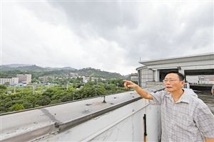 在百花洞村委楼顶的天台上,邬波介绍,当年作战的地方正是百花洞村委附近一带的山头。如今环顾一周,百花洞村委近处的山头已经不在,居民楼房与厂房林立,远处依然群山连绵。