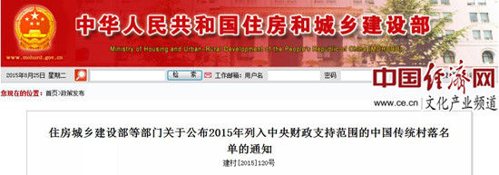 七部门:491个中国传统村落列入2015年中央财政支持范围