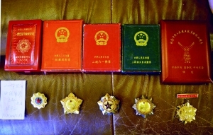 王诚汉戎马一生获得的勋章和证书都被一一珍藏好。