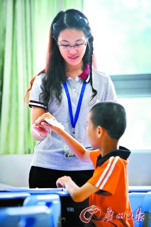 没有学生绘画的缤纷贺卡,从来收不到来自家长的感恩短信和花束,唯有学生一句响亮的“老师好”,成为广州市福利院特教学校老师们甜蜜的祝福。