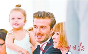 贝克汉姆夫妇和他们的女儿小七。(资料图片)