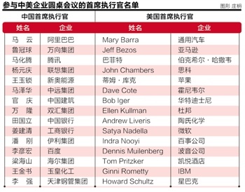 据保尔森基金会于9月17日透露,在9月23日的中美企业CEO圆桌会上,习近平将会见中美各15家企业的首席执行官,参会的中方代表包括马云、马化腾、杨元庆、田国立、李彦宏等,与他们讨论两国面临的问题、挑战和机遇,并探讨如何加强中美经贸关系。