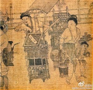 南宋刘松年的《茗园赌市图》局部,市井女性的着装露出了事业线。