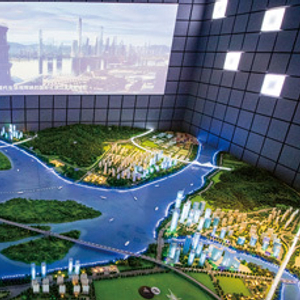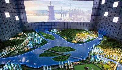 2015年5月22日,福建省福州市,市规划馆里展现的新福州整体规划大型沙盘。