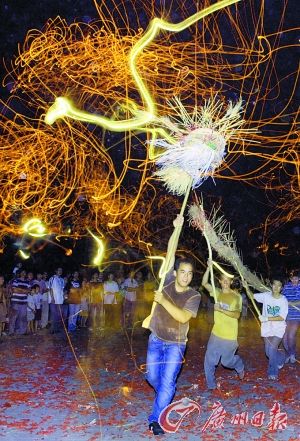 今年中秋夜你可来开开眼界:月亮初升时,龙身插满点燃的线香,16名少年将之举起,在锣鼓声中起舞巡游。随着少年们的跳跃腾挪,草龙舞出万点金光。沿途村民不停向草龙抛鞭炮、放烟花,气氛热烈。