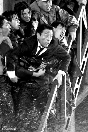 值得一提的是,《超强台风》秉承花小钱办大事的原则,通过自身的脑力劳动,发挥想象力,再动手做出让观众震撼的效果来。但为了逼真还原海啸场景,剧组人员也吃了不少苦头。冯小宁介绍,剧组是站在2007年雨雪冰冻时期的海水里进行实景拍摄的,非常苦,要穿着羽绒服站在齐胸深的海水里工作,一站就是一天。此外,搭建的场景只能用一天,每天只能拍三潮浪,三潮浪过后,场景已经不能用了,如果要恢复就要一个多星期。