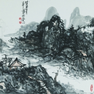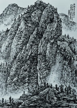 王界山作品《扶摇直上云中山》焦墨山水画