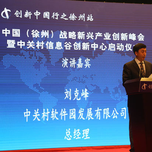“中国(徐州)战略新兴产业创新峰会暨中关村信息谷创新中心启动仪式”于2015年10月17日举行。上图为中关村发展集团软件园总经理刘克峰。(图片来源:新浪财经)