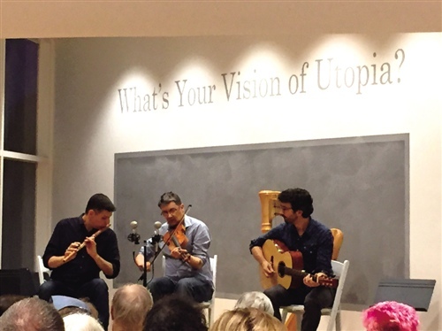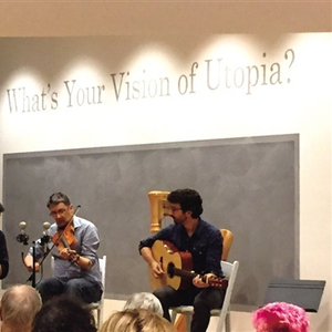 理查德·迈耶事务所设计的图书馆成为社区当下最重要的公共空间,墙上写着一行引人深思的大字:“What's Your Vision of Utopia(什么是你心目中的乌托邦)?”话说这座获得大奖的建筑在设计之初并不受当地人待见,因为它的现代主义风格和纯白外观显得跟该地的整体建筑风格格格不入,因此最后被特意安置在小镇的最边缘一角。我们待在那里的一整周,恰好是该镇的音乐节,这里每天都有各种各样的音乐会,音乐家们从美国各地赶来这里演出。