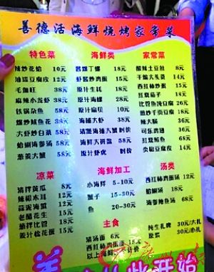 青岛“大虾事件”店的菜单。