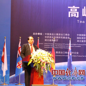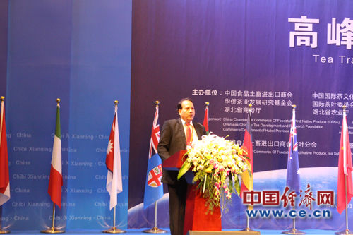 11月6日,国际茶业高峰论坛在赤壁召开,本次论坛主旨为金融·投资·电子商务为主题引领未来商机,用科技创新助推茶经济发展。图为斯里兰卡茶叶局阿努拉发言 中国经济网 记者杨斯阳/摄