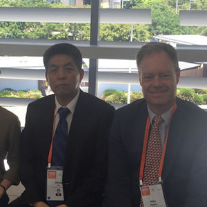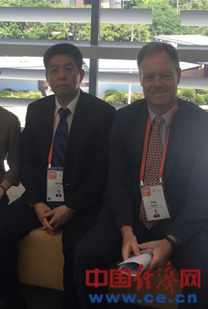 在达尔文参加北澳投资论坛的岚桥集团董事长、总裁叶成(左)和岚桥基建澳大利亚公司负责人迈克?休斯(右)。