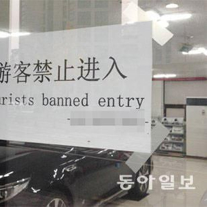 该报道称,位于首尔市钟路区的一家汽车销售店“不堪其扰”,在店面玻璃上贴出了印有中文简体“游客禁止进入”字样的告示。