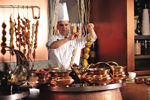 别具风味的咖喱一定是印度档不可缺少的元素:黄油咖喱鸡、印度黄咖喱豆,除此之外,还有档度里烤大虾、档度里烤鸡肉。特别推荐印度档现场操作的印度香煎土豆饼,配自制酸奶和酸梅汁。