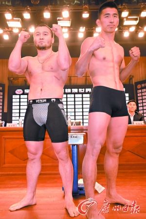 在称重仪式上,几乎每一对选手的体重都相差甚远,纷纷出现超重,个别甚至超出5公斤之多。徐港打65公斤级比赛,他的体重刚好65公斤,而他的对手阿尔利亚·萨列洛夫体重69公斤,超出了4公斤,按规定体重最多只能超1公斤之内。