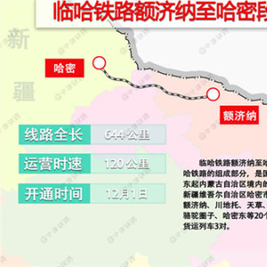 新华网北京12月1日电(记者 黄玥)记者从铁路部门获悉,临哈铁路额济纳至哈密段1日开通运营。该段铁路与既有的临河至策克铁路相连,使临河至哈密铁路全线贯通,新增一条出疆铁路大通道。