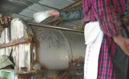 2 商贩将焦亚硫酸钠放入浸泡芋头的脱皮机内。