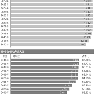 也就是说,再过十年左右的时间,中国总人口规模持续增长态势将终结。而更值得关注的,是整个预测期内的年龄结构变化,尤其是15-59岁劳动年龄人口的持续减少。