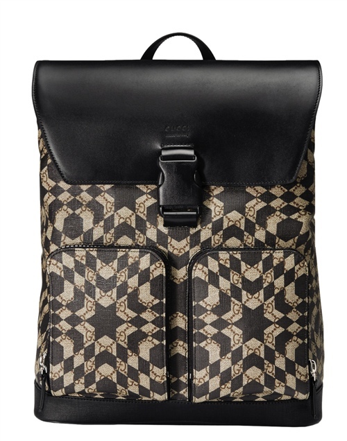 GG Caleido系列中的每一款包袋都有其独特的印花——立体手提袋和公文包上的尖顶纹,带翻盖双肩包和手拿包上的星形纹,行李袋和经典款双肩包上的条状纹。