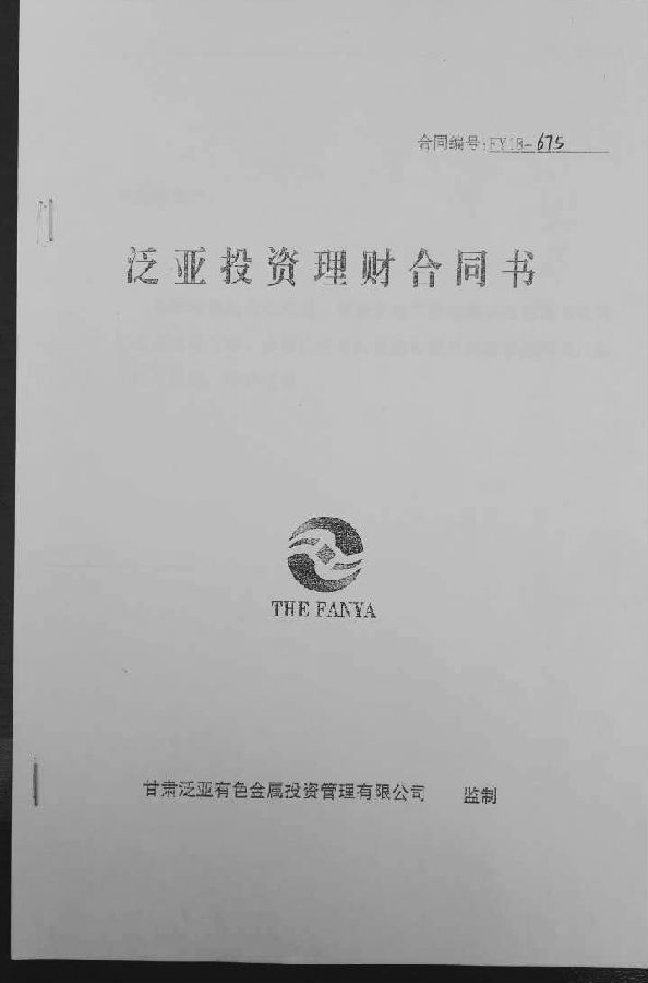 2012年初,韩德玉从广东回兰州探亲期间,被当地银行客户经理盛邀参加活动,向她力推一款高息理财产品,并特别请甘肃泛亚人员来银行向她讲解,称保本保息,资金由银行三方监管等。当时,韩德玉不急用钱,先后在银行购买了近450万元定期白银理财产品和日进日出的“日金宝”理财产品,甘肃泛亚并给她出具了《保本保息理财承诺书》。