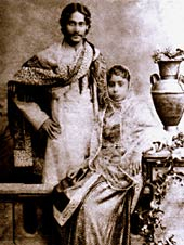 泰戈尔成长在加尔各答一个非常富有的家族。侄女印蒂拉在回忆录中形容年轻时的他“才华、英俊、幸运、富贵、有名气”。不过,这位倜傥诗人并非纨绔子弟, 相反私德像诗歌一样无瑕。他的婚姻为包办,妻子穆里纳莉妮最初嫁过来时只有9岁多,不算美丽,也没有文化。但泰戈尔接受了父亲的安排,婚后聘请著名学者教 她梵语和孟加拉语,后来她还学会英语、弹钢琴和演戏剧。根据泰戈尔的《书信集》,还有印蒂拉的回忆,他们的婚姻生活堪称美满。