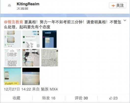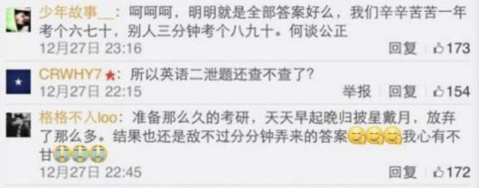 截至目前,调查还在进行中。在微博上,与考研“泄题”有关的截图并不鲜见。