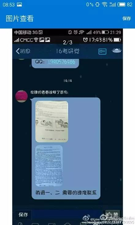 该网友加的一个管综复习群里的朋友,在群里爆出他和他朋友的聊天记录。