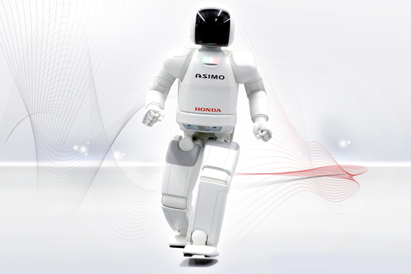 智能机器人Asimo能模仿人类的动作上下楼梯、踢球、端茶倒水