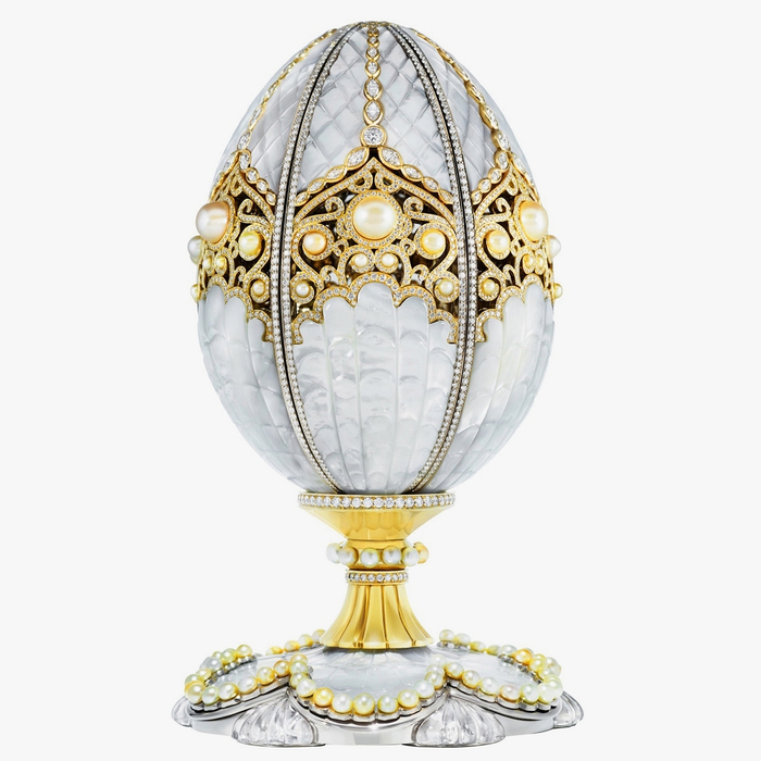 这颗冬日彩蛋通过珍珠、钻石和水晶石的搭配呈现出一个静谧的冬日。彩蛋以雕花水晶石为基座,中间饰以镂空花纹;整件作品共镶有139颗白珍珠、以及3305颗圆钻。这颗彩蛋于2015年2月举行的多哈珠宝腕表展中进行拍卖,最终成交价为3000万美元。