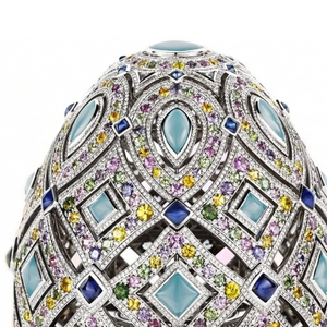 在2015年年底的伦敦杰作博览会上,俄罗斯珠宝商法贝热推出了最后一枚 “四季” 高级珠宝彩蛋,通过满镶彩色钻石和蓝宝石呈现出一个热情洋溢的缤纷夏季。