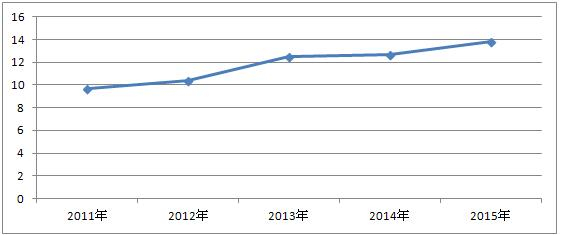 图二:2011-2015年中国茶叶出口金额趋势图 单位:亿美元