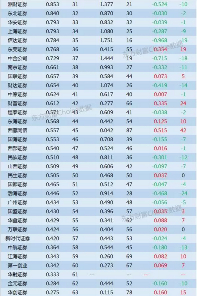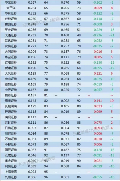 以下为百大券商市场份额与排名详细情况表: