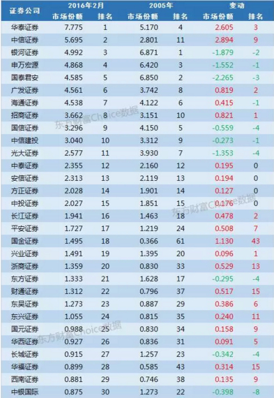 十大券商市场份额变动历史