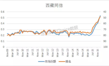 西藏同信表现逆天了,超过97%的市场份额,无需多言。